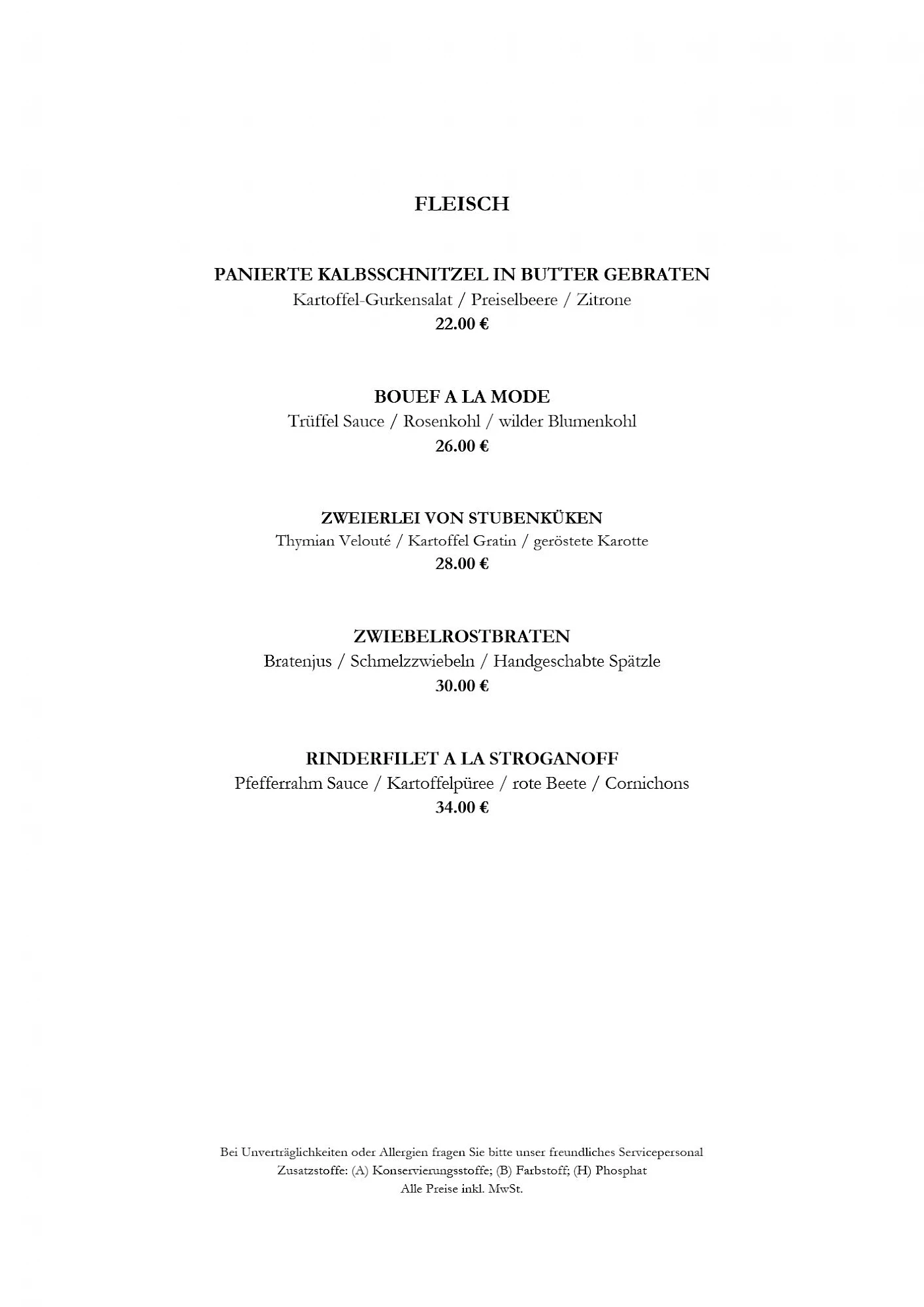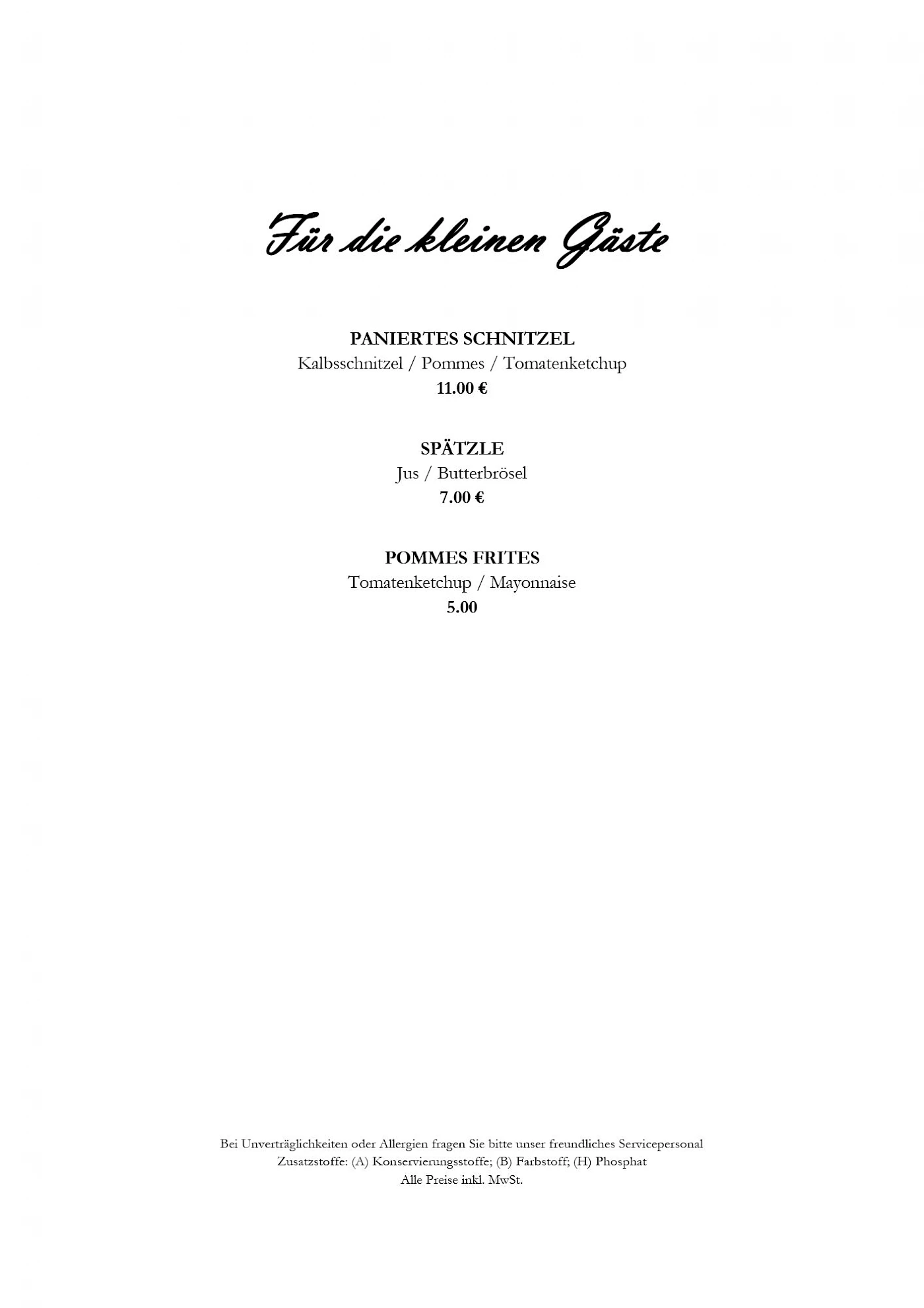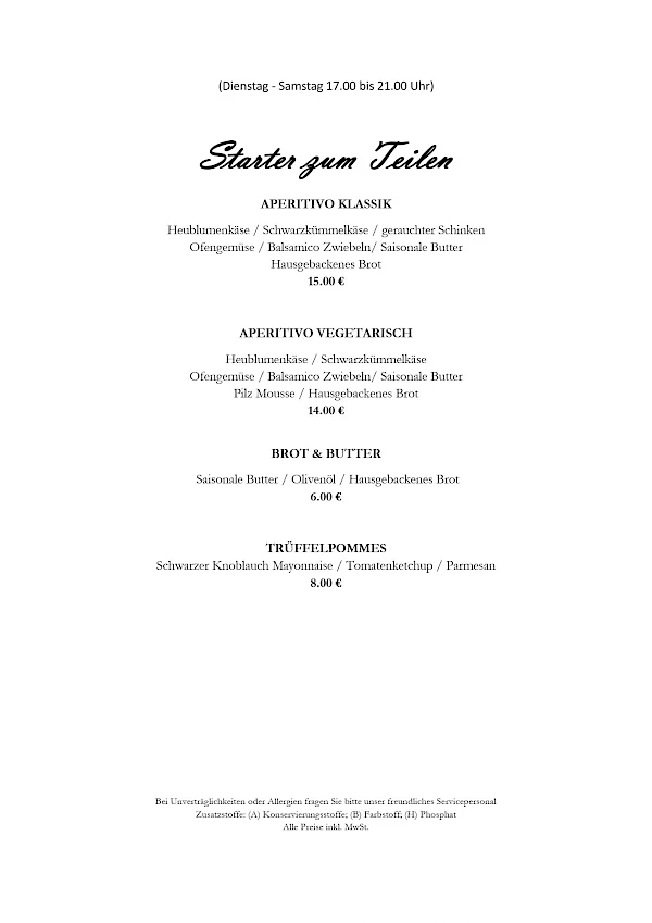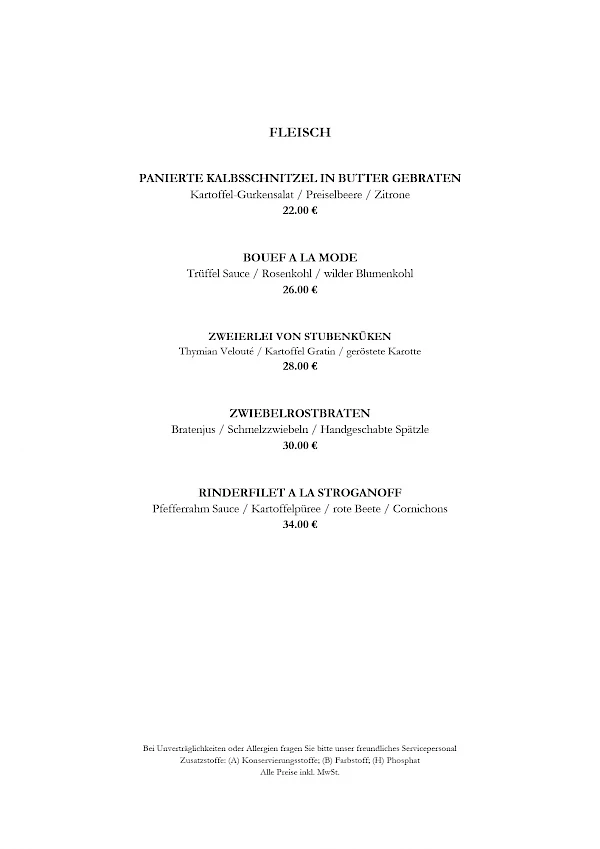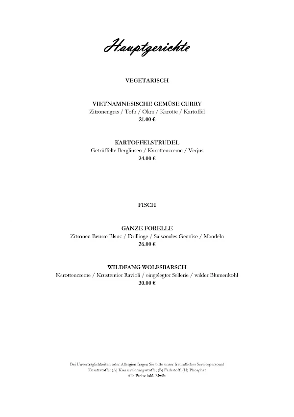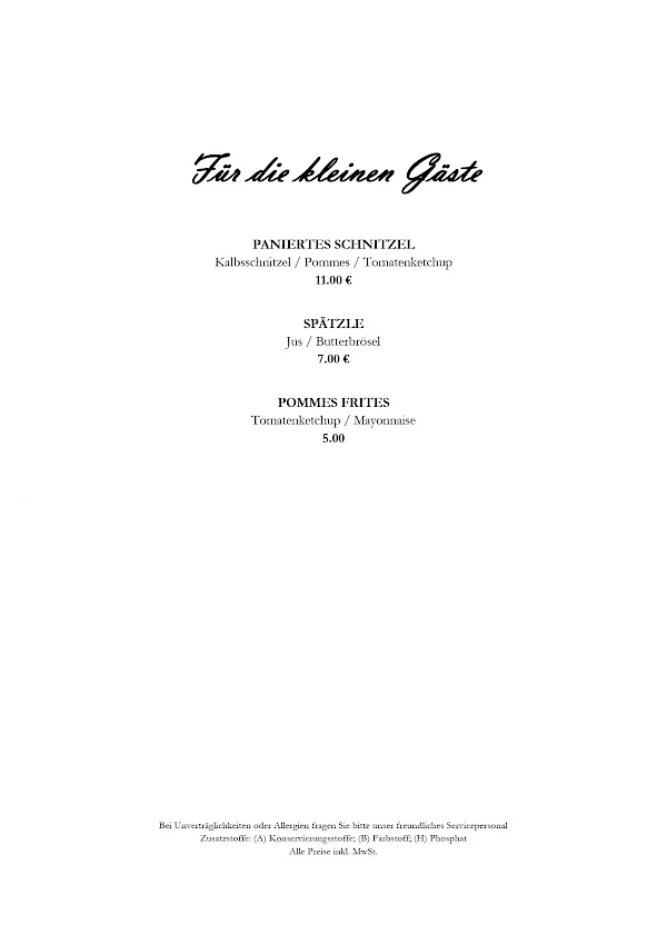 Hinweis zur Speisekarten: